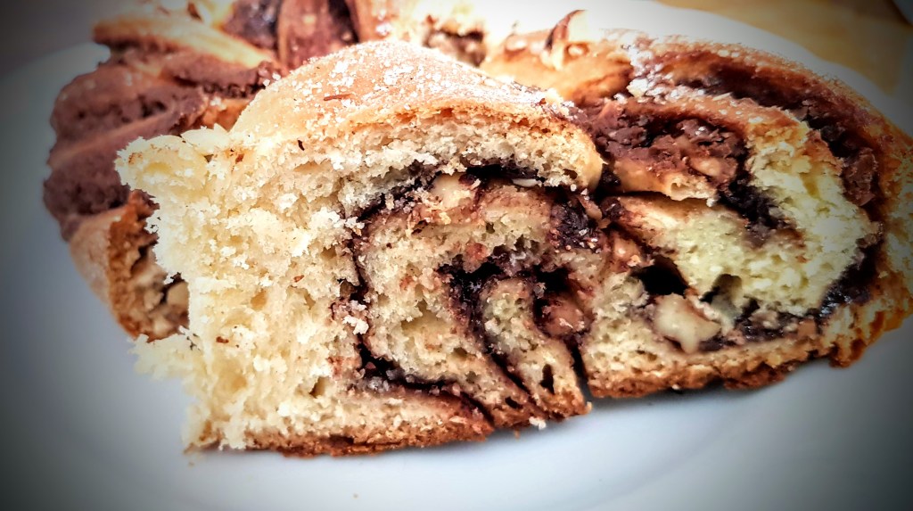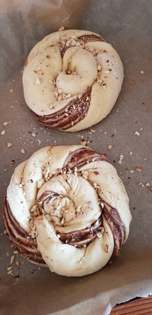 Babka na poljskom znači baka pa mi je baš nekako drag naziv ovog kolača jer priznat ćete, ovakve vrste slastica vežemo uz djetinjstvo i kuhinju naših baka. Radila sam verziju s čokoladnim namazom i prženim lješnjacima. Umjesto gotovog namaza, možete otopiti čokoladu sa slatkim vrhnjem i time premazivati tijesto. Prženi lješnjaci daju baš onaj fini okus i miris te odličnu teksturu i hrskavost.