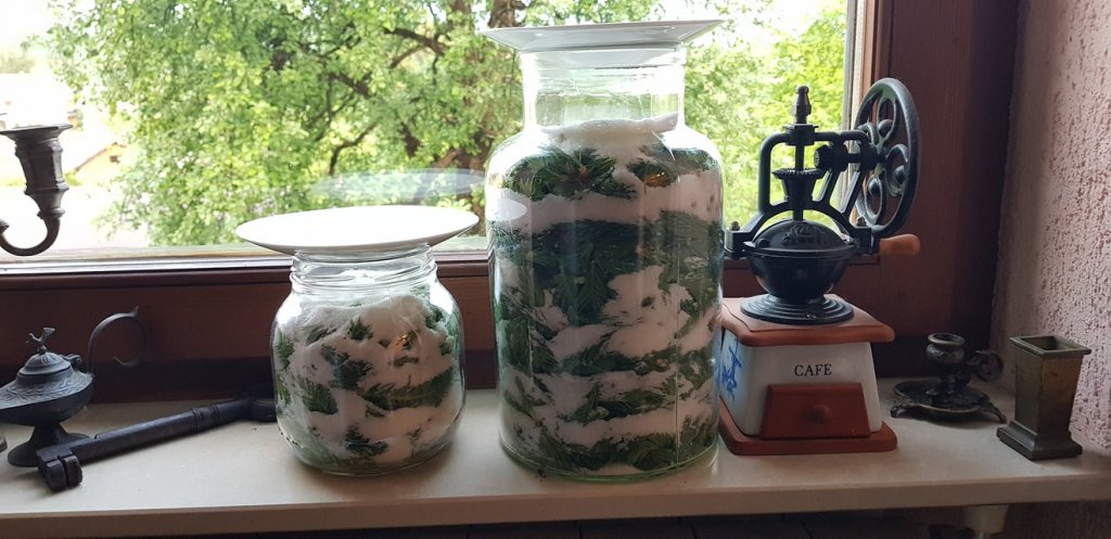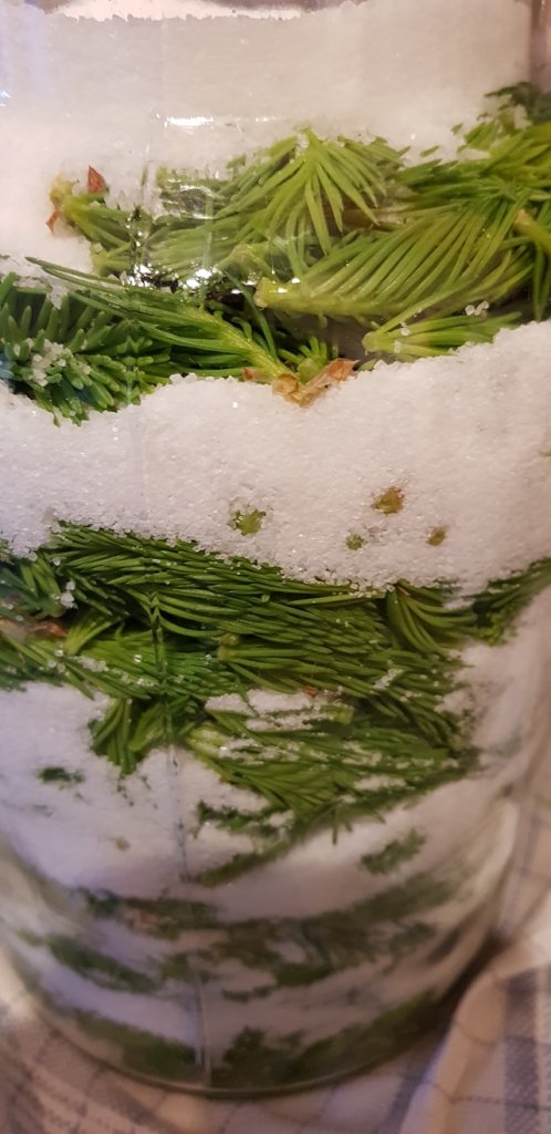 Za izradu sirupa je potrebno 40-ak dana. Kako se šećer topi, u njemu se otapaju smole i sokovi iz izdanaka. Staklenku povremeno protresite.
