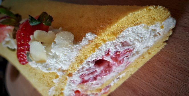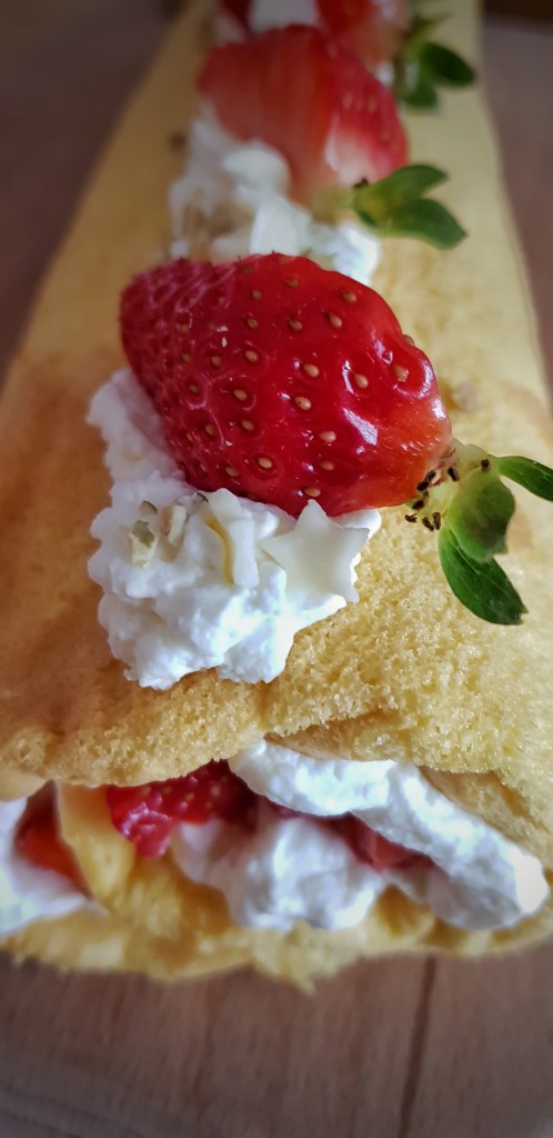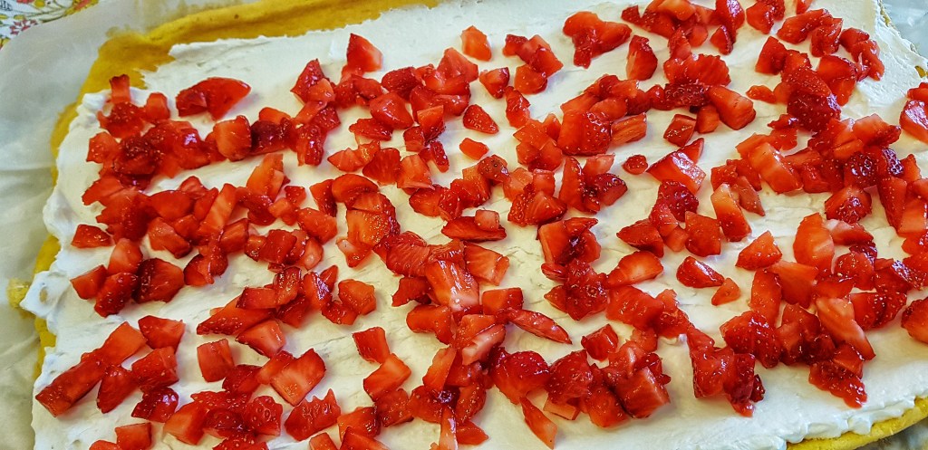 Planirala sam za danas napisati novu priču no moram s vama podijeliti još jedan slatki recept. Ovaj kolač je toliko lijep i ukusan u svojoj jednostavnosti, a i sezona je jagoda pa isprobajte svakako. Rolada s jagodama je kolač koji se sastoji od jednostavnog, žutog biskvita, vrhnja za šlag, krem sira i jagoda. Bez puno “kerefeka”, kako bi rekla moja prijateljica i sa jednostavnim sastojcima. Slatkoću možete prilagoditi po vlastitom ukusu. Vrlo brzo i lako se priprema, a umjesto jagoda možete staviti neko drugo voće (ananas ili breskve iz kompota, borovnice, maline, kupine…). Vjerujem da ovaj kolač mogu pripremiti i početnici u spravljanju slastica.