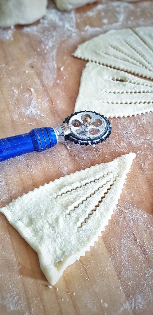 Za rezanje sam koristila nazubljeni kotačić, ali naravno da možete koristiti nož kojeg umočite u brašno da vam se ne lijepi.