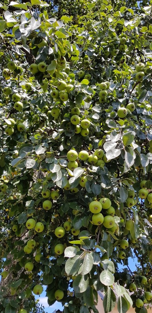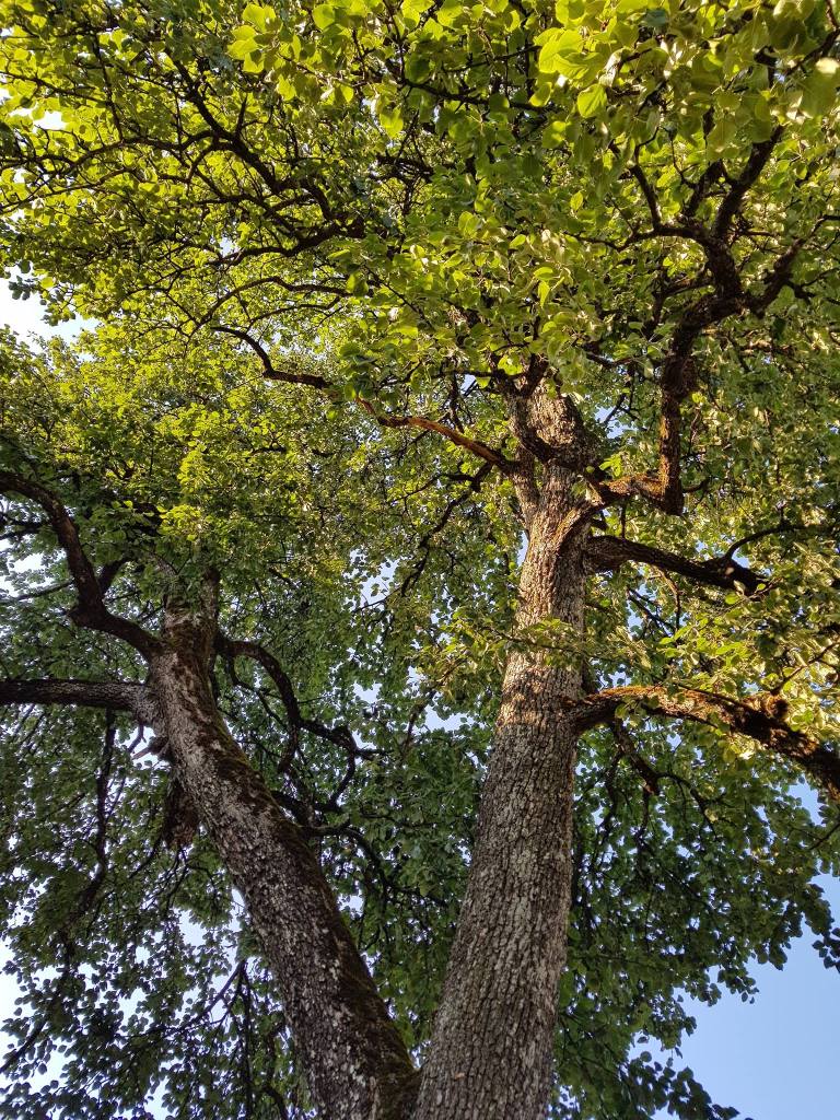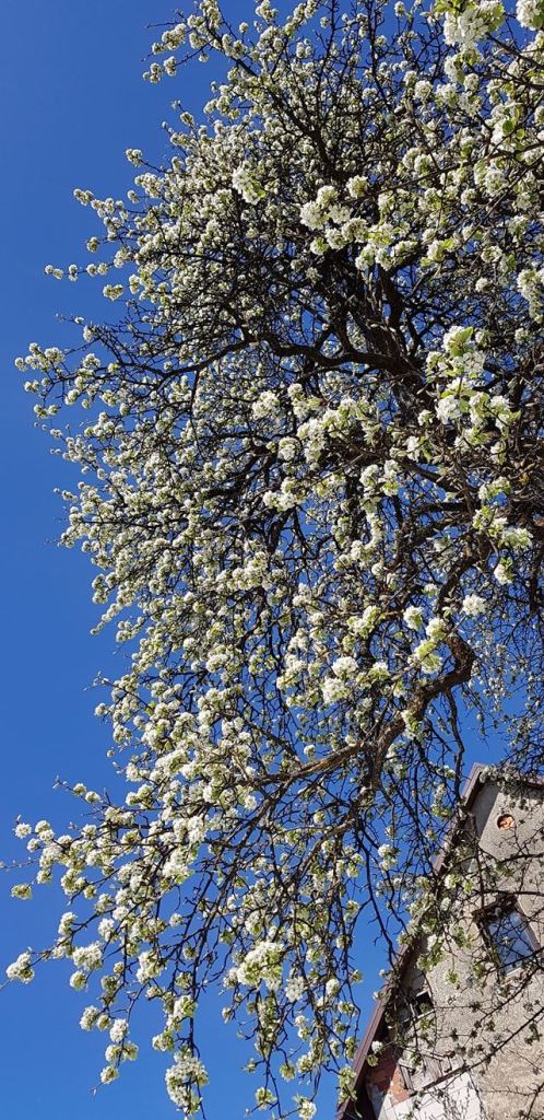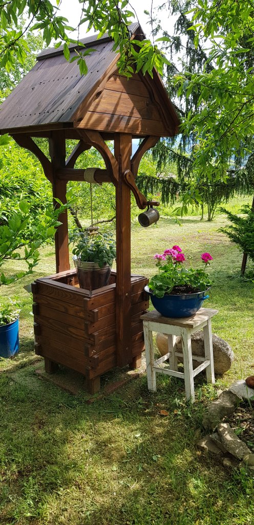 Nije to vrt poput onih engleskih s travnjacima, gdje je svaka travka počešljana i zna gdje joj je mjesto. Naša klima i podneblje to uvjetuju, a mi smo našem vrtu ostavili dozu prirodnosti i divljine pa tako često imamo posjetu srndaća ili vjeverica koji se dođu pogostiti plodovima. Vrtom dominira stara kruška tepka. Neki kažu da te kruške mogu doživjeti i dvjesto godina. Ne znamo koliko je stara, ali sudeći po visini i širini krošnje, ova naša broji preko sto godina. Njeni plodovi su tvrdi sve dok u jesen ne otpadnu i stajanjem postaju smeđi i slatki poput meda. Od nje pečemo rakiju. Tu našu tepku obožavam u svim godišnjim dobima jer je to prvo što ugledam kada se u ranu zoru probudim i pogledam kroz prozor. Njena ogromna krošnja je skrovište mnogim pticama pa mogu reći da naš vrt pjeva. Ispod tepke je mjesto gdje se družimo s dragim ljudima i gdje je pravi gorski kotao s dimom vatre i mirisom hrane pripremljene s ljubavlju.