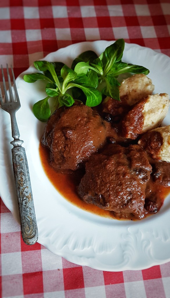 Hrana Gorskog kotara često obuhvaća i jela spravljena od divljači pa se tako na stolovima nađe i meso divlje svinje. Kako imam puno prijatelja i poznanika koji su lovci nerijetko zaluta komad finog mesa i u moju kuhinju. Divljač, osim u svojoj kuhinji, pripremam i na otvorenoj vatri u ljetnoj sezoni i često se krčka gulaš u kotliću. Divljač se može pripremati i pod pekom ili u obliku odrezaka u nekom finom umaku s povrćem i voćem poput borovnica, brusnica ili aronije. Nedavno sam dobila krasne odreske vepra i odlučila sam ih pripremiti u umaku s dodatkom aronije i jabuke. Meso vepra sadrži manje masnoće nego meso domaće svinje pa traži i drugačiju pripremu, naročito dijelovi poput buta ili kremenadle. Uz ovako pripremljene odreske, poslužila sam žličnjake od kruha aromatizirane muškatnim oraščićem.