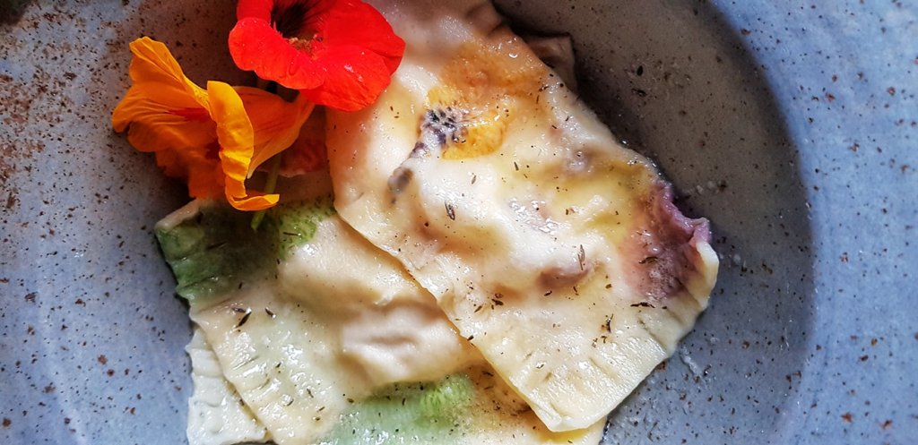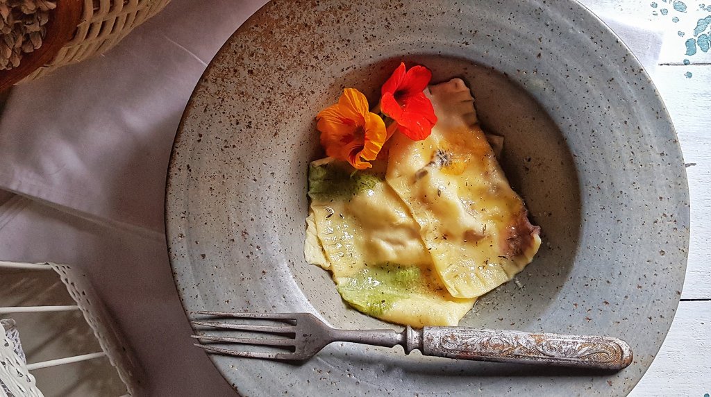 Kao mali predah od kolačića, slatkiša, pečenja i blagdanskog obilja, danas vam pišem recept za tjesteninu i to za raviole s dragoljubom punjene sirom i sušenom rajčicom u umaku od maslaca aromatiziranog majčinom dušicom. Jako volim pripremati domaću tjesteninu, bilo da su to rezanci za juhu, široki rezanci za prilog gulašu, lazanje ili razne oblike raviola. No kada sam kod prijateljice ugledala tjesteninu u kojoj su bile začinske trave, jednostavno sam morala pokušati pripremiti nešto takvo. Za svoju tjesteninu odabrala sam dragoljub, biljku koja je jestiva i istovremeno dekorativna. Njeni listovi su blago paprenastog okusa, a nezrele sjemenke se mogu kiseliti ili pripremati u salamuri kao kapare. Cvijet je žute ili narančaste boje i također je jestiv. Osim što je jestiv, dragoljub je i ljekovit.
