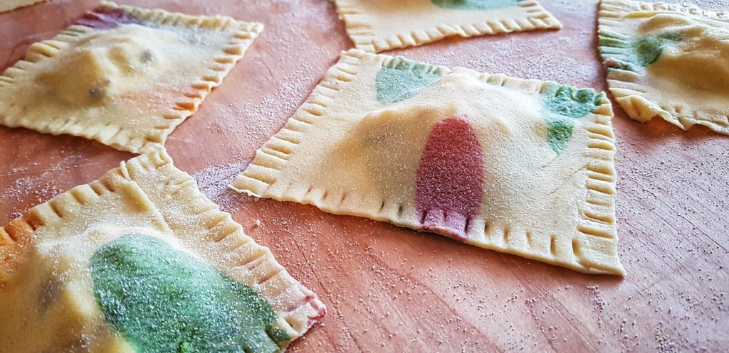 Ravioli su vrsta tjestenine koja sadrži nadjev i obično su četvrtastog oblika no priprema se i u drugim oblicima poput kruga ili polukruga. Nadjevi mogu biti raznovrsni, mesni, riblji, sirni, s povrćem, s gljivama ili u kombinacijama. Ravioli se poslužuju u juhi ili u umaku, a potječu iz Italije. Ovakva vrsta tjestenine se najlakše priprema pomoću stroja za tjesteninu jer ćete ju tako moći dovoljno stanjiti. Ovo vizualno lijepo jelo zaslužuje biti posluženo u lijepom posuđu, a upravo posuđe iz Croker Pottery Studija je i kvalitetno, ručno rađeno i prelijepo pa posjetite i njihovu FB stranicu.