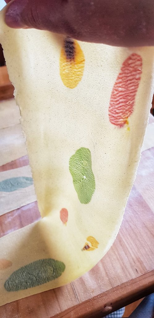 Najprije umijesite tijesto od jaja, brašna, malo soli, ulja i po potrebi vode. Tijesto mora biti čvrsto, ali i elastično da ne puca pri razvlačenju. Mijesite ga nekoliko minuta pa prekrijte krpom i ostavite 15-ak minuta da odmori. Za to vrijeme pripremite biljke kojima ćete laminirati paštu. Operite i lagano osušite listiće i cvjetove.