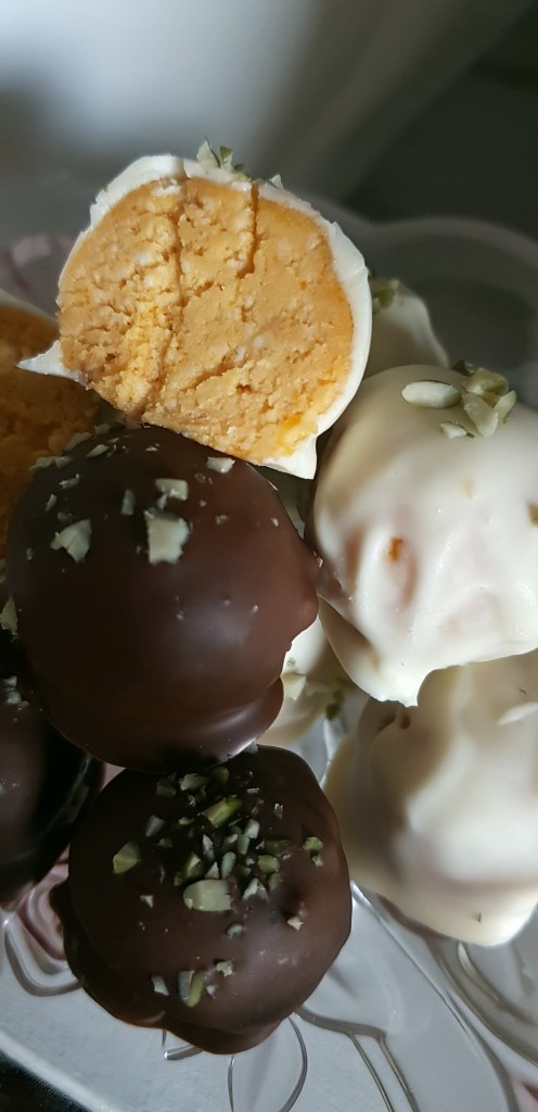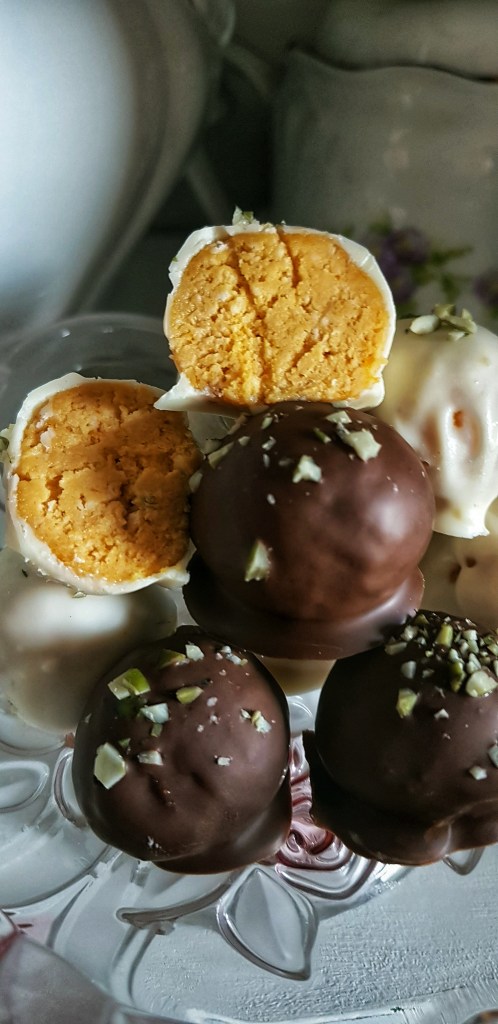 Takve nepečene okruglice koje nalikuju bombonjerama možete napraviti od raznih sastojaka poput mrkve, rogača, kokosa pa čak i bundeve. Upravo ove s bundevom su me oduševile jer su iznutra kremaste, aromatične i prekrasno žute, a ako ih utopite u čokoladu i ohladite, dobit ćete prave zalogaje za sladokusce.