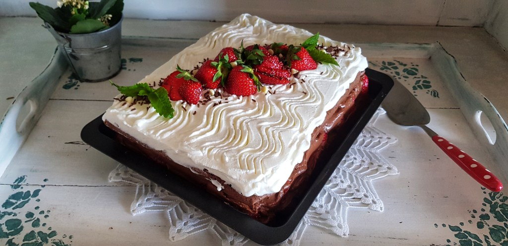 Proljeće je stiglo i u Gorski kotar, doduše prohladno, ali tu je. Stigle su i prve jagode pa dok ne dozriju one domaće ili još bolje, one šumske, evo jedne slastice od jagoda i čokolade. Čokolada i jagode su savršen par jer jagode daju svježinu i aromu, a čokolada slatkoću i puninu okusa. Nije ni čudo da se često nađu zajedno u desertima pa sam ih spojila u ovaj osvježavajući čokoladni kolač s jagodama. Ovaj recept možete pripremiti i kao tortu i peći u okruglom kalupu pa i ja tako planiram idućeg puta. Još ako možete nabrati šumske jagode, ovaj kolač će biti slastica kojom ćete osvojiti sva srca.