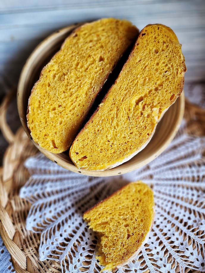 Pečena bundeva ima puniji okus te nema toliko vode, a sam kruh bude slatkast i žut poput dukata. Naravno, može se umijesiti i sa svježim ili suhim kvascem, samo tada prilagodite vrijeme dizanja i sve možete odraditi u nekoliko sati.