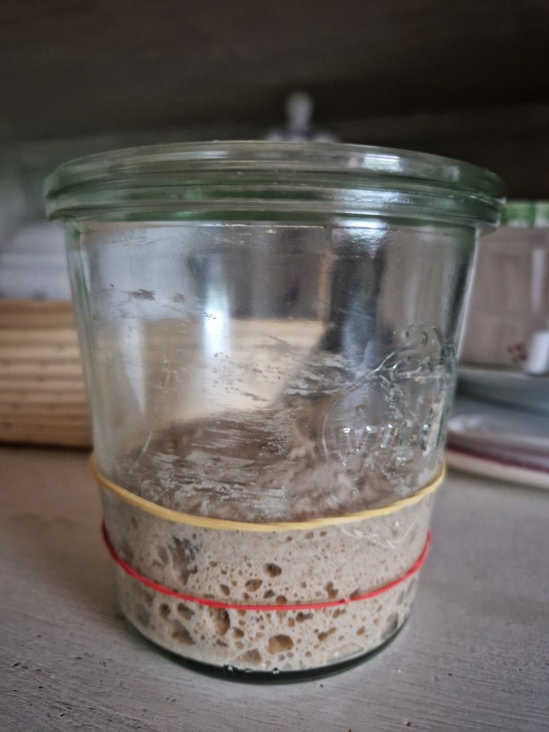 Za one koji žele svoj raženi kvasac pretvoriti u čvrsti bijeli kakav koristim za svoj kruh, pratite jer slijede upute u objavi Kako napraviti čvrsti starter. Za to će nam trebati malo ovog postojećeg kvasca.