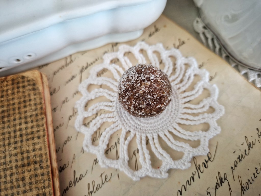 Kada se malo ohladilo, vlažnim rukama radite kuglice koje valjajte u kristal šećer i slažite na pladanj. Gotove kuglice ostavite par sati na zraku da se potpuno ohlade i osuše. Spremite ih u prikladnu posudu i čuvajte na hladnom mjestu do posluživanja.