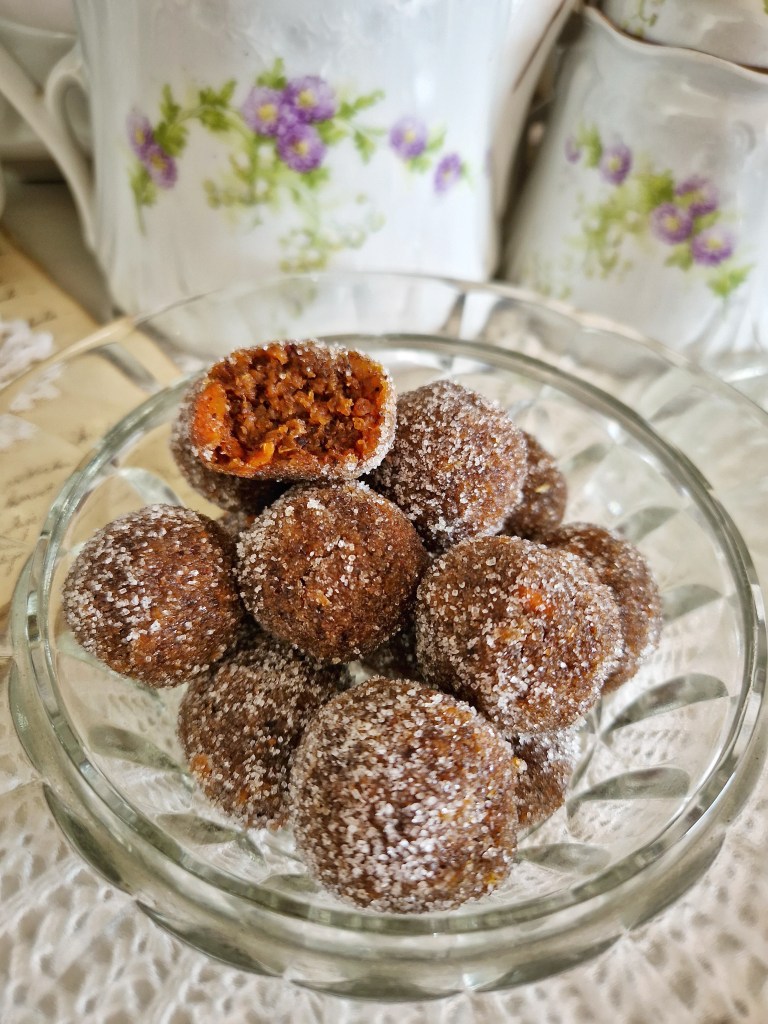 Isprobavanje recepata iz starih, obiteljskih bilježnica svog supruga mi je postao spasonosni odmak od nekih teških tema koje nas okružuju. Sam pogled na požutjele stranice i krasopisom ispisane retke mi djeluje terapeutski. Odvede me u maštanje o ljudima tog doba, kako se živjelo, jelo, stvaralo za neku budućnost koju mi sada živimo, a ovaj recept za kuglice od mrkve me podsjetio i na moju baku koja je često pripremala sličan slatkiš, samo bez dodatka rogača. Sjećam se mirisa i okusa tih kuglice te njenog smijeha kada je govorila kako nevoljko jedemo povrće, osim u kolačima. U staroj bilježnici postoji i takav recept za kuglice od mrkve, no baš zbog rogača sam odlučila najprije isprobati ovaj jer mi je spoj rogača, mrkve i začina poput cimeta djelovao obećavajuće. I nisam pogriješila jer ako volite rogač, oduševit će vas okus ovih kuglica. Ovaj starinski slatkiš je i veganski jer ne sadrži namirnice životinjskog porijekla, kao ni brašno pa je pogodan za osobe osjetljive na gluten. Sama priprema je jednostavna i nemojte se uplašiti karameliziranog šećera, a taj okus karamele se predivno sljubio s mrkvom i rogačem. Količina sastojaka je dovoljna za izradu nekih 15 kuglica pa ako trebate više, svakako povećajte sastojke.