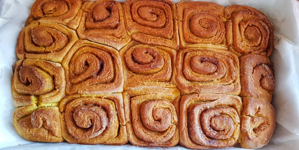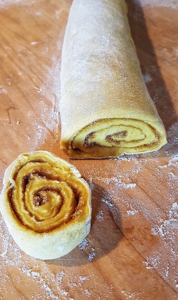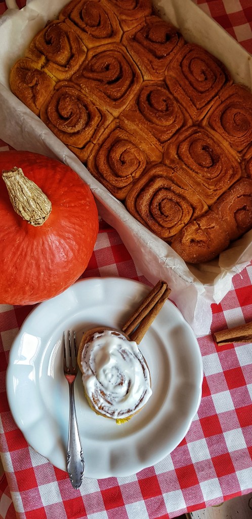 Okuson, mirisom i bojom su ove rolice baš prava jesenska slastica, a cimet i bundeva su jako skladan jesenski par (baš poput cimeta i jabuke). Cimet rolice su mirisno i slatko pecivo od dizanog tijesta s aromatičnim začinima i smeđim šećerom, a dok se peku, miriši cijelo susjedstvo. Tijesto ovih rolica sam obogatila pireom pečene hokaido tikve koji je dao mekoću i predivnu žutu boju te suptilan okus bundeve.