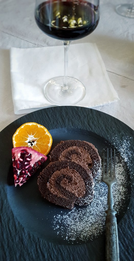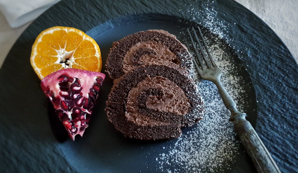 Osim sitnih, suhih kolača, uvijek se na blagdanskom stolu mora naći barem neki kremasti kolač. Pa još ako je čokoladni i lijepog izgleda, usrećit će svakog slatkoljupca. Ova čokoladna rolada je odličan izbor jer je prepuna tamne čokolade, ne sadrži puno šećera, a možete ju dekorirati po vlastitom ukusu. Ja sam ju pripremala za rođendan i tko god je kušao, bio je oduševljen. Uz malo voća ili tučenog slatkog vrhnja, ova rolada je apsolutni užitak za nepce. Bitno je koristiti kvalitetnu tamnu čokoladu i kakao prah za onaj pravi i intenzivan okus čokolade. Krema se priprema od slatkog vrhnja i čokolade i vrlo brzo je gotova, a za onu kiselkastu notu koja daje ravnotežu čokoladnim kolačima zaslužan je domaći pekmez od marelice kojim sam premazala biskvit. Jako fino bi išla i neka naranča, malina ili višnja.