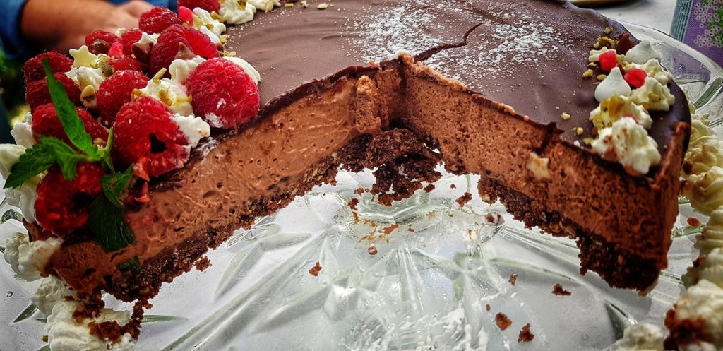 Volim pripremati torte. Kako one klasične, s nekoliko slojeva biskvita i kremama koje se kuhaju, tako i one ljetne, voćne i osvježavajuće. Ima mi nešto važno i nešto primamljivo u tom trudu kojeg uložim jer torte su uvijek za neku posebnu prigodu pa u pripremu torte uvijek utkam i emociju vezanu za osobu kojoj je torta namijenjena. Takva prigoda je i rođendan moje prijateljice koji pada na jedan praznik u ljetnim mjesecima i tada se obično okupimo u vrtu uz bogat stol, smijeh i dobro raspoloženje. Za tu prigodu sam pripremila čokoladnu tortu s malinama jer se nismo mogli odlučiti jede li nam se nešto voćno ili čokoladno. Zato sam spojila oboje u ovu očaravajuću slasticu za koju vam neće trebati pećnica.