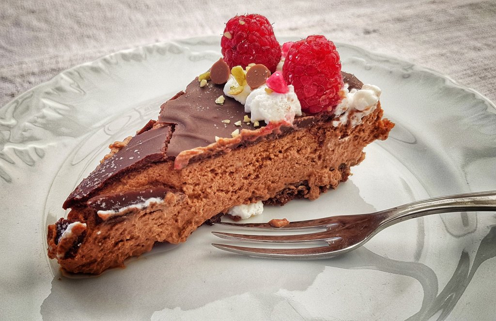 Za podlogu sam koristila integralne čokoladne kekse marke Gran cereale koji su dali baš finu hrskavost. Krema je prozračna, čokoladna s krem sirom i slatkim vrhnjem, a maline su dale predivnu dozu kiselosti i svježine. Tortu sam pripremila u manjem kalupu (promjera 20 cm) pa ako ćete pripremati veću, povećajte količinu sastojaka. Umjesto malina možete staviti neko drugo omiljeno voće poput jagoda, borovnica, kupina i slično.