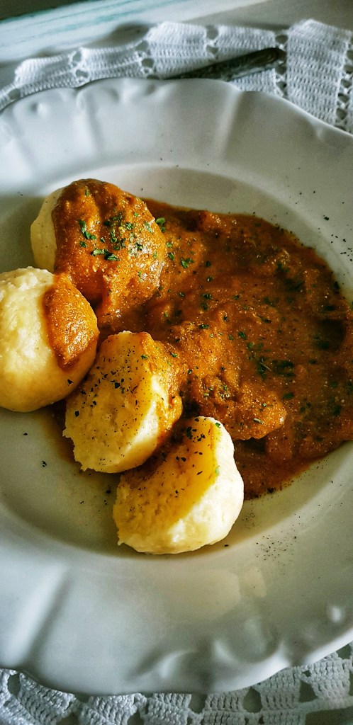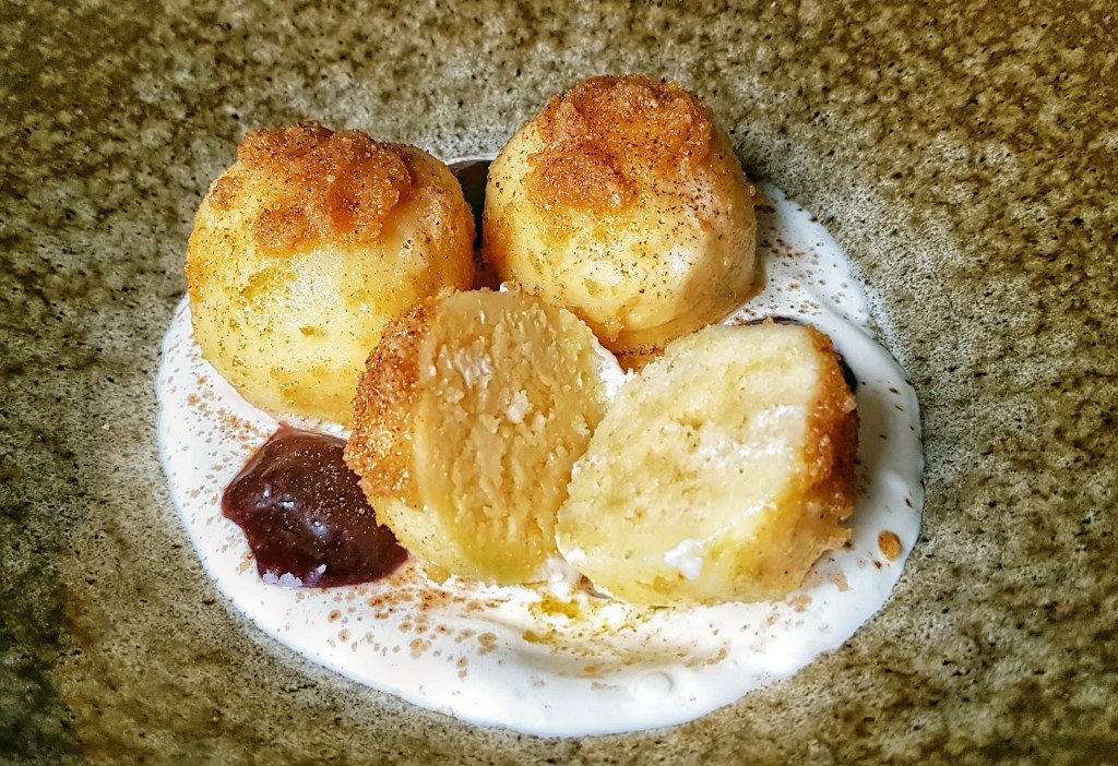 Nakon što sam stvarno pomislila kako sam uspjela izbjeći koronu, pokazalo se da smo ju ipak negdje pokupili i suprug i ja. Simptome imam, ali nekako u pauzi između temperature i malaksalosti, budem nemirna od tolikog mirovanja pa se ipak spustim u kuhinju i skuham nešto jednostavno. Jučer je odluka pala na griz knedle po receptu iz stare bilježnice Merice Majetić. Pošto sam izgubila osjet mirisa i okusa, moram priznati da mi je jako izazovno pripremati neko novo jelo za koje nisam sigurna kakvog je okusa. Kod ovih knedli mi je bilo savršeno to što su jako fine teksture, meke su i tope se u ustima, a najvažnije je da se lako pripremaju. Mogu se poslužiti i u slatkoj i u slanoj varijanti pa ih svakako probajte u oba slučaja. U nazivu recepta stoji da su to griz knedle za pečenje pa smo ih za ručak jeli uz junetinu u umaku, a za večeru (ili čak i doručak u mom slučaju jer su ostale savršeno meke) uz kiselo vrhnje, krušne mrvice na maslacu i pekmez od šljiva te malo cimeta. Mogućnosti posluživanja su stvarno bezbrojne, možete napraviti neki fini umak s vrhnjem i sirom pa začiniti vlascem ili medvjeđim lukom ili u slatkoj verziji iskoristiti sezonsko voće za umak. Mislim da bi se čak mogle napuniti poput slavnih knedli sa šljivama ili marelicama.