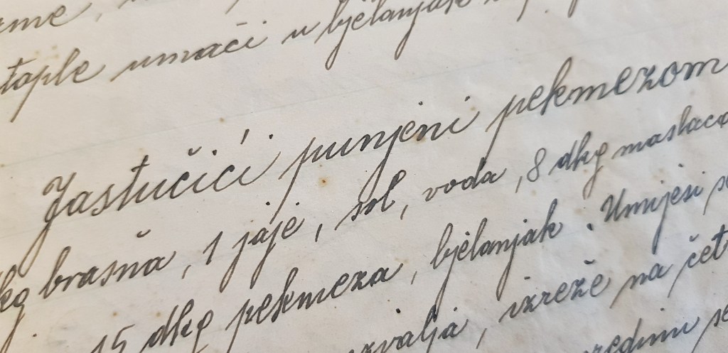 Ono što me doista oduševljava je jednostavnost ovog recepta koji je baš ovakav sačuvan i danas jer kad upišete u tražilicu tačke ili tačkrle, dobit ćete jako puno rezultata. Uvijek se nekako ispostavi da je jednostavna, domaća hrana, najbolja hrana i da te stare recepte valja čuvati od zaborava. Recept vam pišem onako kako stoji u bilježnici.