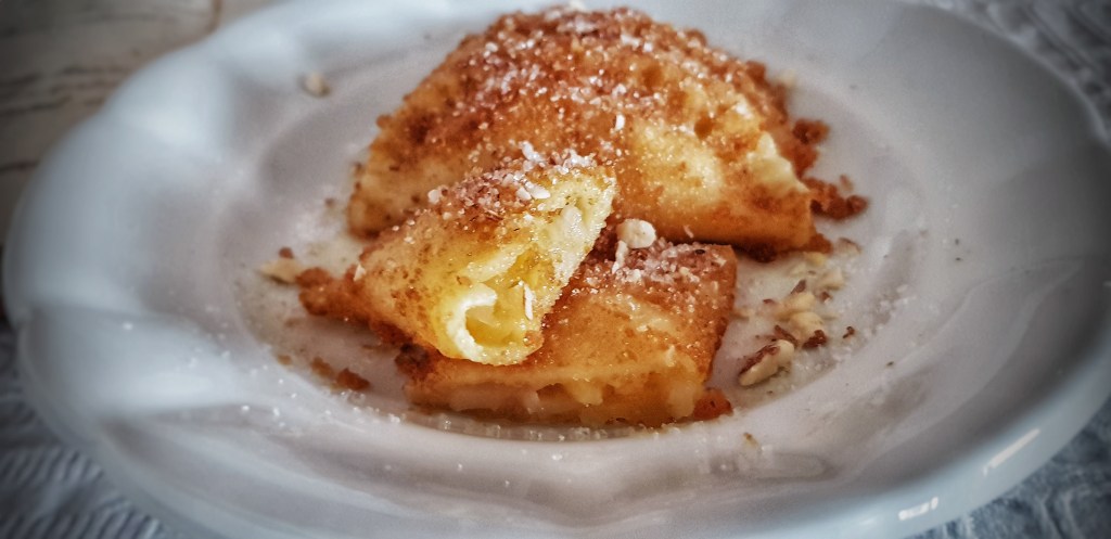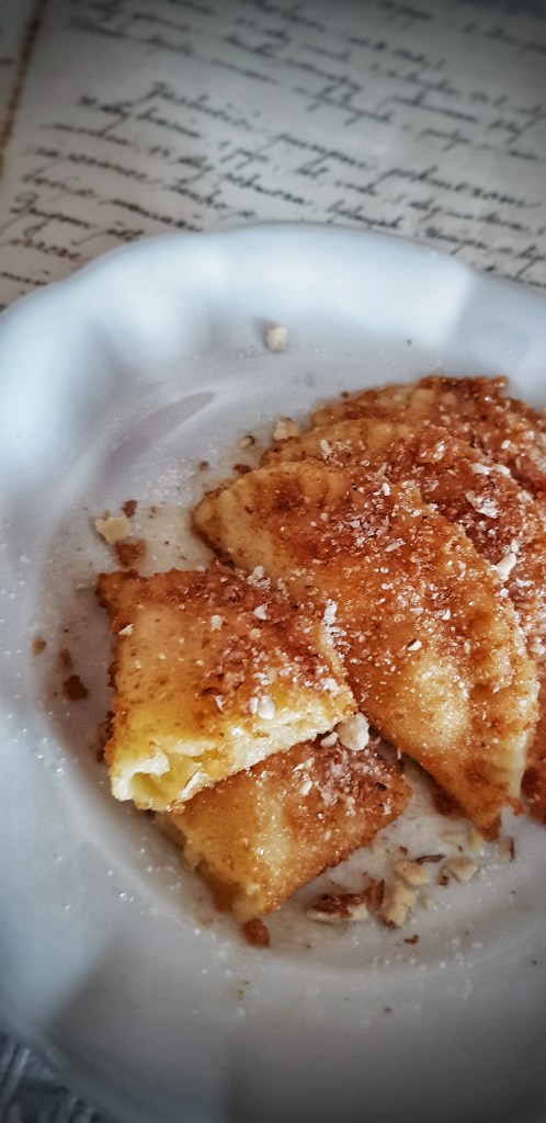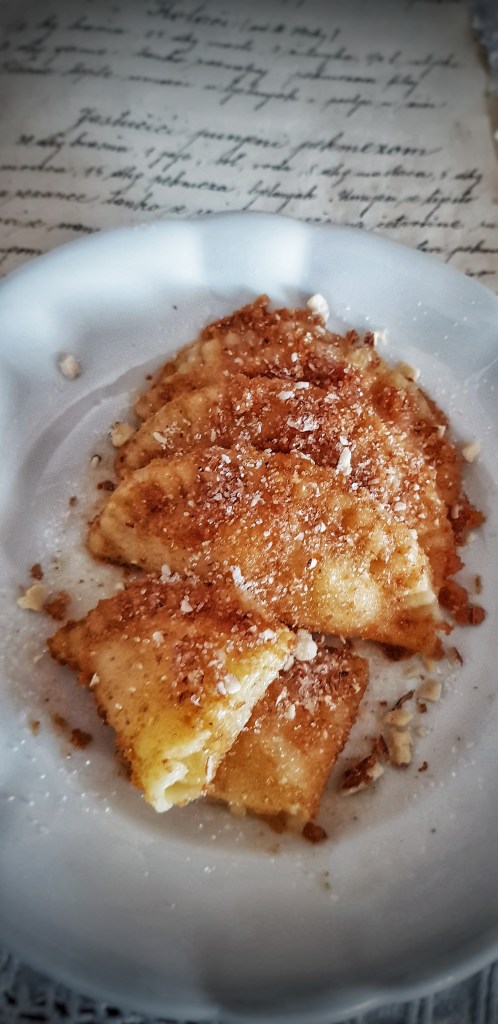 Krasopisom pisan recept iz stare bilježnice kaže da se ova poslastica zove jastučići punjeni pekmezom, a mnogi od vas će prepoznati starinsko, slavonsko, slatko jelo taške, tačke, tačkrle odnosno torbice punjene pekmezom, orasima ili makom. To je slatko jelo za koje, vjerujem, uvijek imate namirnice i ne treba vam puno vremena za pripremu. Ako vam, slučajno, ostane viška, možete ih zalediti pa skuhati kada vam padne šećer ili banu nenajavljeni gosti. Radi se o jednostavnom tijestu, poput onoga za rezance, koje se puni nadjevom te kuha u slanoj vodi i začinjava krušnim mrvicama na maslacu i/ili vrhnjem.
