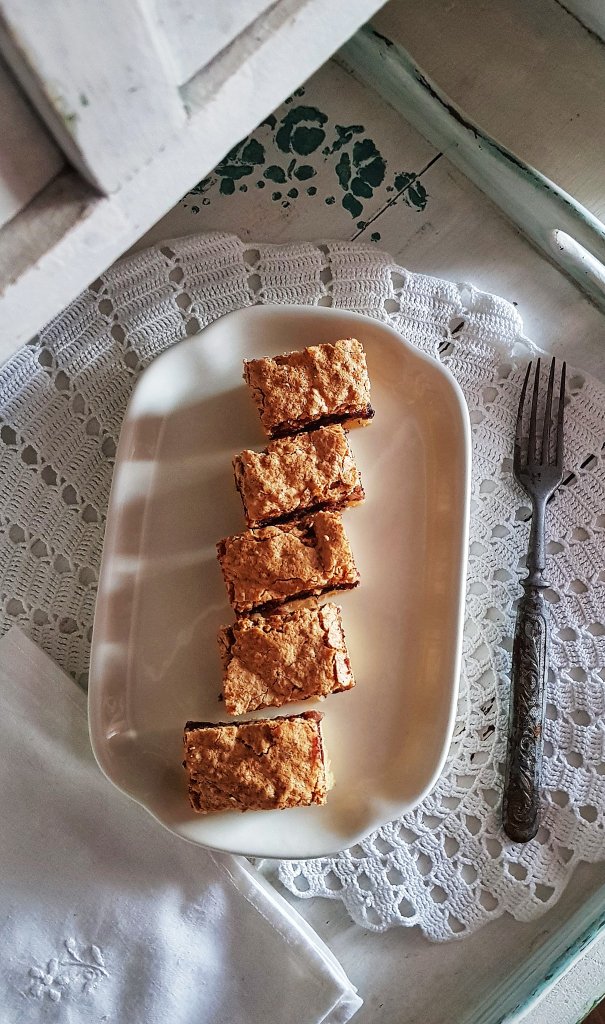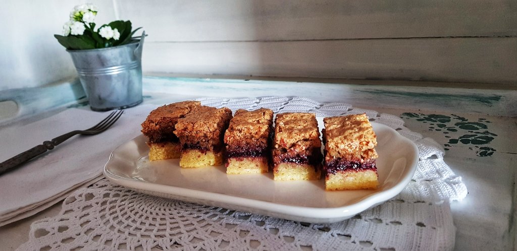 Ovaj recept se malo razlikuje od onog sveprisutnog kojeg nalazim na raznim blogovima i portalima. Naime, u tijesto ide jedno cijelo jaje, a na vrh se stavlja snijeg od 4 bjelanjka pa kada ne znate što s viškom bjelanjaka (od pripreme krafni, buhtli i sličnih slastica), eto rješenja. U ovom kolaču jako bitnu ulogu igra pekmez. Tradicionalno, stavlja se pekmez od marelice koji daje savršen balans orasima. Ja sam stavila pekmez od aronije, a jako dobro bi pasao pekmez od šipka, ribizla ili možda maline. Također, mi volimo deblje tijesto, a vi možete raditi klasično pa ga tanje razvaljati, ali pripazite kod pečenja da se ne prepeče.