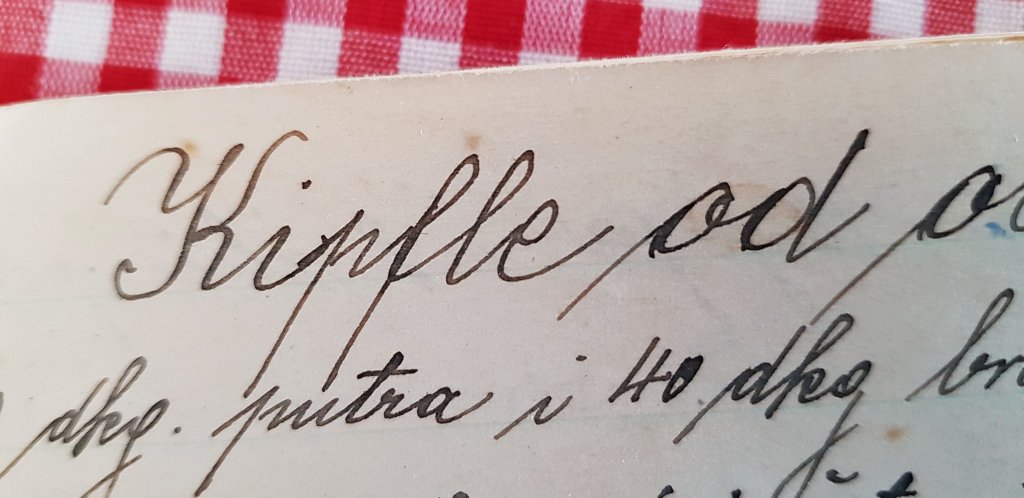 Već poznata stara bilježnica je prepuna recepata za razne kifle ili kipfle kako se češće navodi. Već sam isprobala nekoliko, a sada je došao na red i ovaj recept uz koji stoji napomena u zagradi da je od g. Ekštajn. Volim recepte gdje domaćica tako zabilježi tko joj je dao recept jer i sama to činim pa time recepti postaju baš osobni i posebni. To mi govori da je recept isproban i da je nekoga oduševio toliko da ga je imao potrebu zapisati. Upravo takve su i ove kiflice jer mene su baš oduševile. Za njih će vam trebati maslac i ne preporučujem nikakve druge zamjene, margarin ili nešto takvo. Maslac im daje baš onaj poseban okus. Što se tiče punjenja, piše da se “filaju makom, orasima ili pekmezom”. Odlučila sam dio ovih kiflica napuniti makom, a dio domaćim pekmezom od šljiva kojeg sama radim. Ne mogu se odlučiti koje su mi bile bolje. Ako volite, probajte ih puniti orasima, vjerujem da su jednako ukusne. Recept je zapisan s tek nekoliko redaka i ne navode se sve količine potrebnih sastojaka pa sam opet improvizirala.