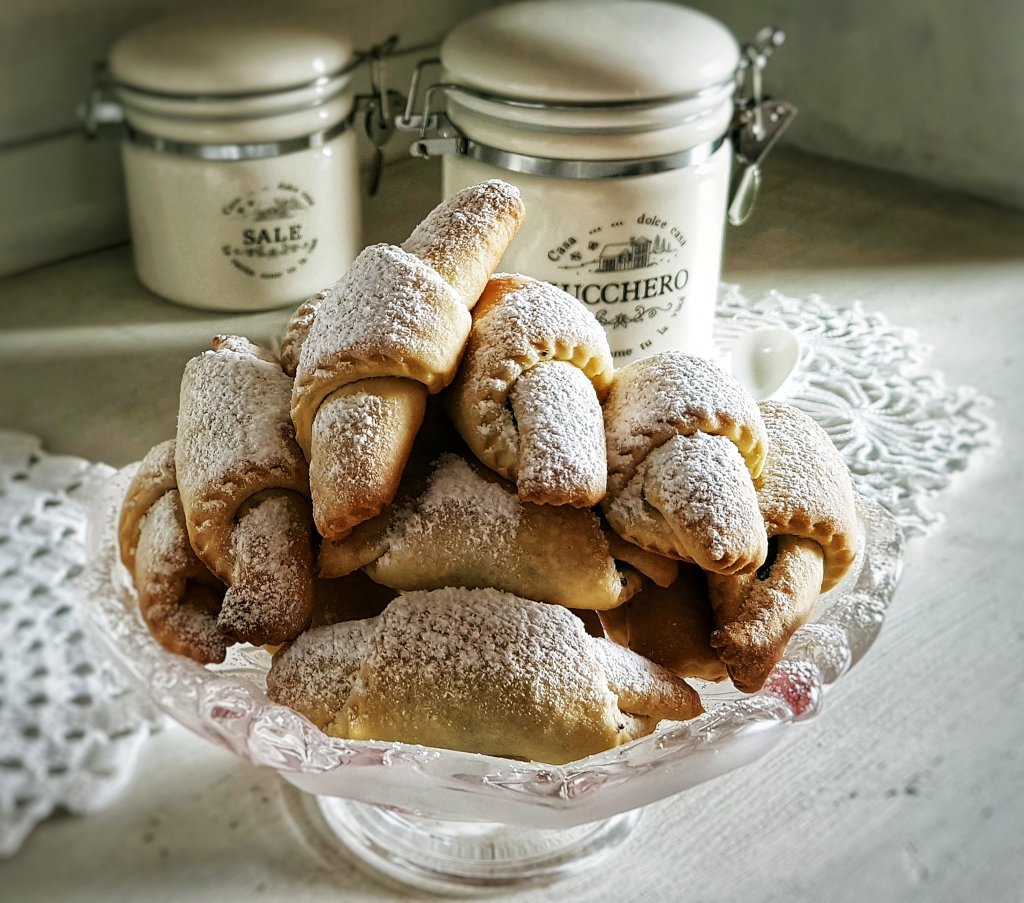 U tijesto ne idu jaja, ali ide puno maslaca i malo kvasca. Vrlo lijepo se oblikuju, a kada se ispeku su i prhke i meke u isti tren tako da sam se zaljubila u ove kiflice. Svakako će se naći na popisu najomiljenijih, a punjenje ću mijenjati, ovisno o raspoloženju i želji. Što se tiče punjenja s makom, mak sam “pofurila” kipućim mlijekom da dobijem teksturu kojom mogu puniti kifle. Domaćica piše da se napravi kobasica i podijeli na 40 dijelova pa se oblikuju kifle. Ja sam tijesto podijelila na 4 dijela pa izrezala osmine/trokute koje sam punila nadjevom i oblikovala kiflice. Nisam premazivala ničim prije pečenja, a vi možete razmutiti jaje pa ih premazati.