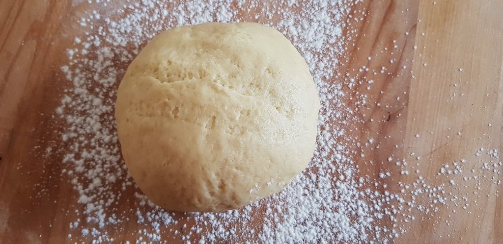 Prebacite tijesto na pobrašnjenu podlogu u još ga kratko premijesite. Oblikujte 4 kugle pa prekrijte prozirnom folijom i ostavite nekih pola sata.