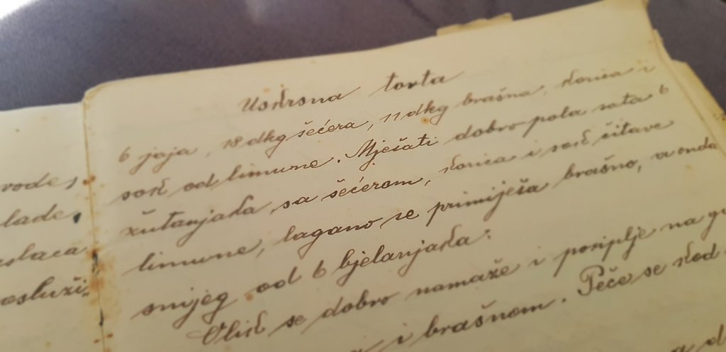 Recept vam pišem onako kako je navedeno u kuharici. Domaćica navodi da se biskvit treba ispeći dan ranije i da se žumanjci moraju tući sa šećerom barem pola sata.